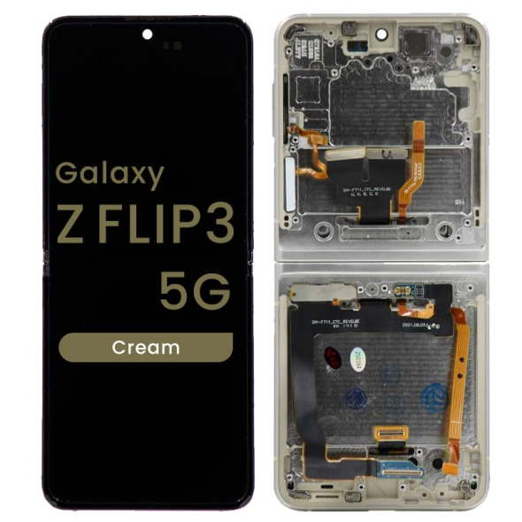 شاشة داخلية كاملة مع إطار (باستثناء الكاميرا) GH82-27243B/GH82-26273B لهاتف جلاكسي Z فليب3 SM-F711B باللون الكريمي؛ جودة حزمة الخدمة.