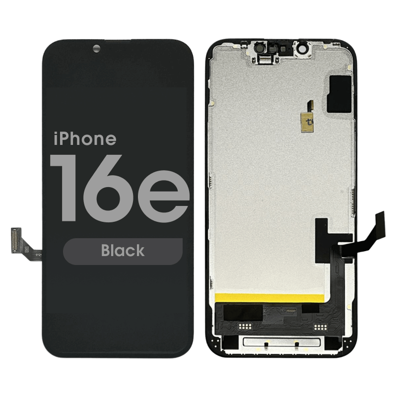 Soft‑OLED display and Touchscreen assembly, 90Hz, includes frame; premium OLED option. Compatibility: iPhone 16e (A3212/A3409/A3410/A3408).
