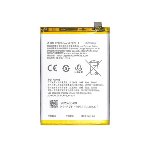 Compatible Li‑Po 4000 mAh non‑removable battery for Oppo A1k CPH1923; replacement to restore runtime (15W charging behaviour).