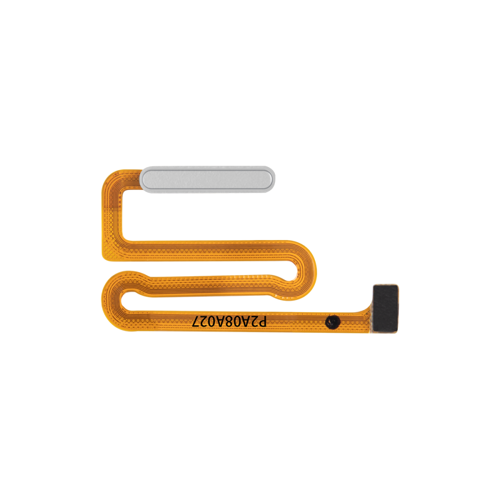 White fingerprint + power flex; fits A04s SM‑A047F; includes button cap and flex connector