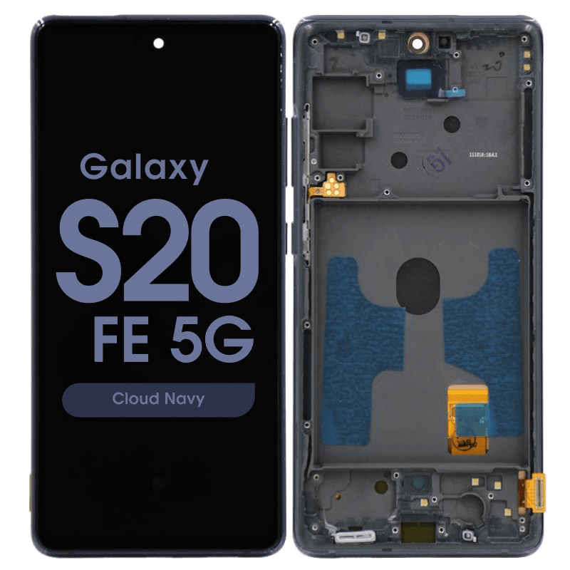 Super AMOLED 6.5" 1080x2400 120Hz complete display with frame for Galaxy S20 FE; cloud navy; pulled condition.
