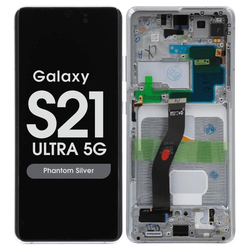 Dynamic AMOLED 2X 6.8" 1440x3200 515 ppi 120Hz complete display with frame for Galaxy S21 Ultra SM‑G998B in silver; pulled condition.