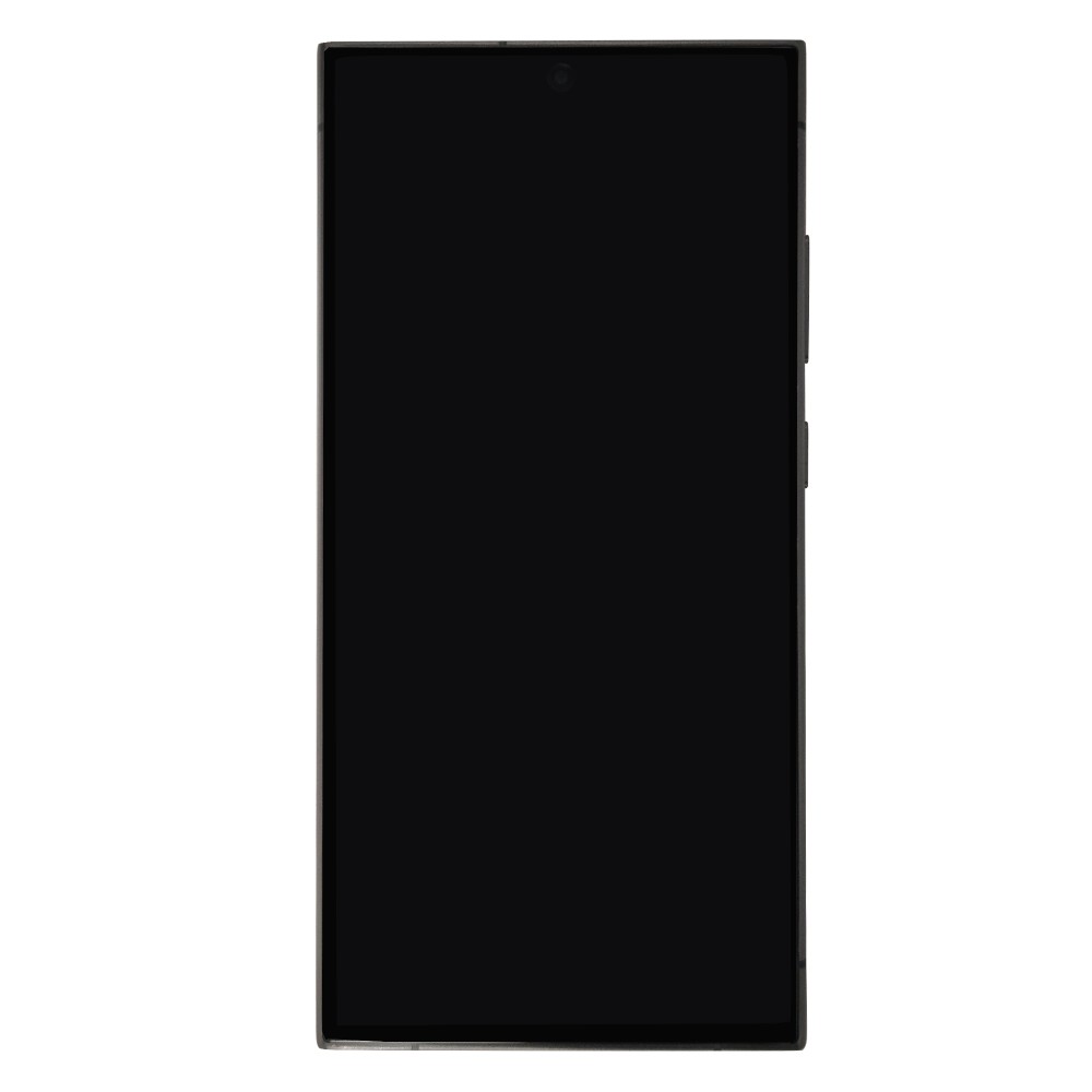 Assembled display + frame + adhesive GH82‑33385A / GH82‑33399B for Galaxy S24 Ultra SM‑S928B in titanium black; service pack pre‑assembled.