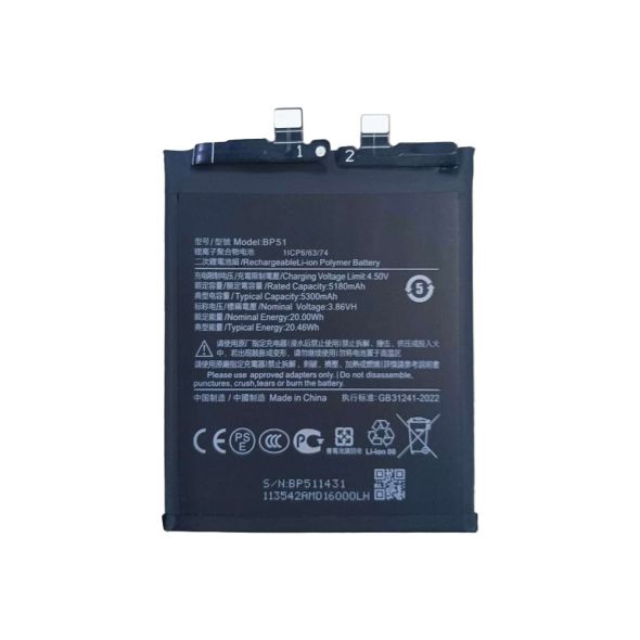 Li‑Po 5300 mAh (listed 5000/5300), non‑removable.